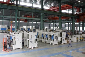 生產(chǎn)能力:東雄機(jī)床有限公司工廠共有五個(gè)生產(chǎn)車間,其中三個(gè)大型裝配車間配備6臺行車較大100噸吊重能力, 配備2千噸裝配能力大型組立坑道。適合生產(chǎn)15~2000噸的各類沖床。